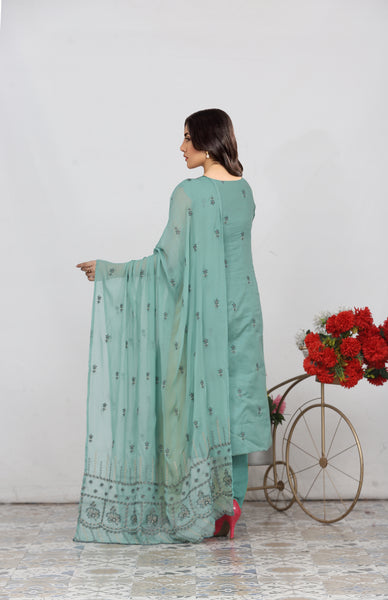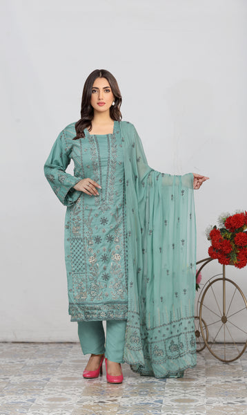 Achieve a festive look with our three-piece unstitched embroidered lawn suit.